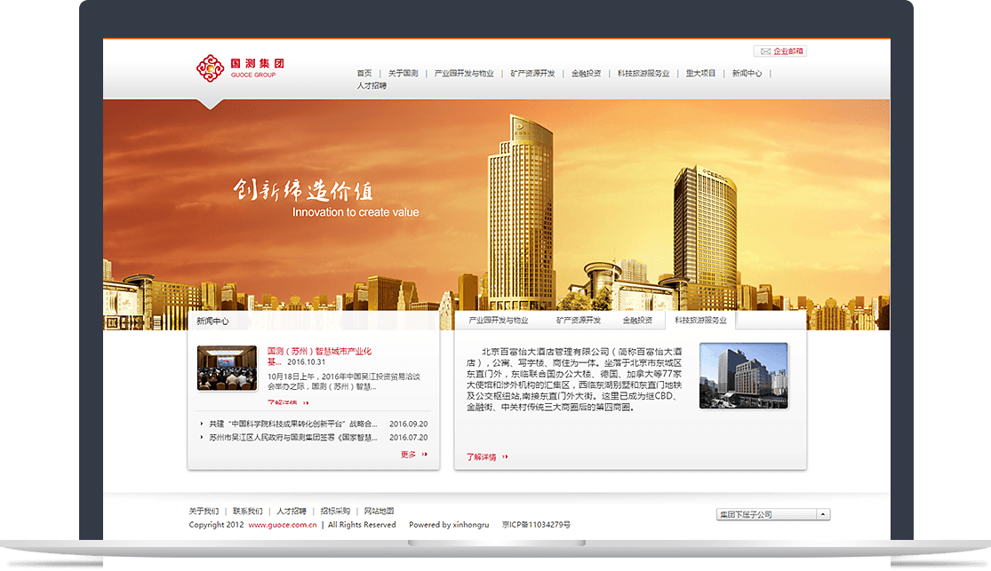 網(wǎng)站整體穩(wěn)重大氣,簡(jiǎn)潔干凈,成功塑造了國(guó)測(cè)集團(tuán)多元化的互聯(lián)網(wǎng)品牌形象