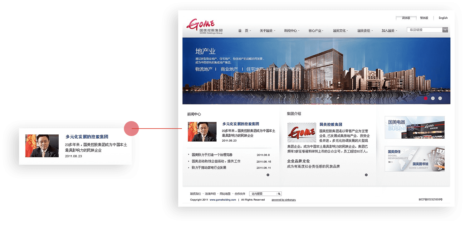 國美控股集團官網集展示、互動、營銷于一體,全面配合國美集團“用戶為王、產品為王、體驗為王