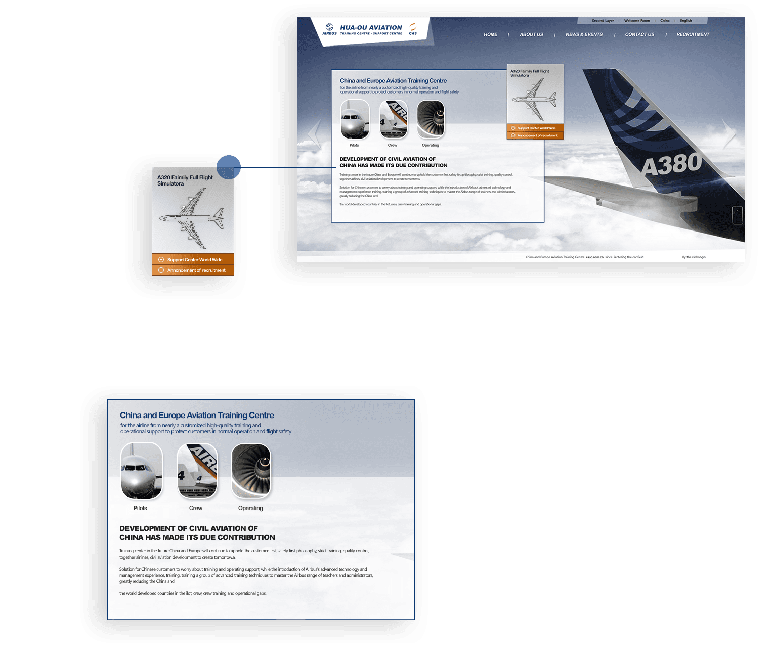 平臺以A380代表性圖片作為主視覺焦點,有效傳達自身產(chǎn)品特征。并根據(jù)機長交流學習需求,定制開發(fā)平臺功能。