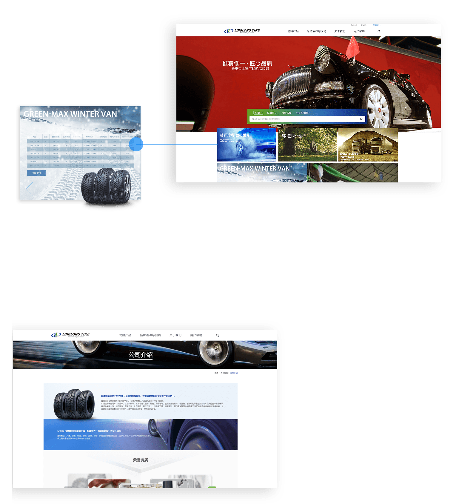 玲瓏輪胎官網(wǎng)第一屏設(shè)置智能搜索通道,通過多維度分類進(jìn)行精準(zhǔn)查詢,便于用戶直接找到自己想要的產(chǎn)品。