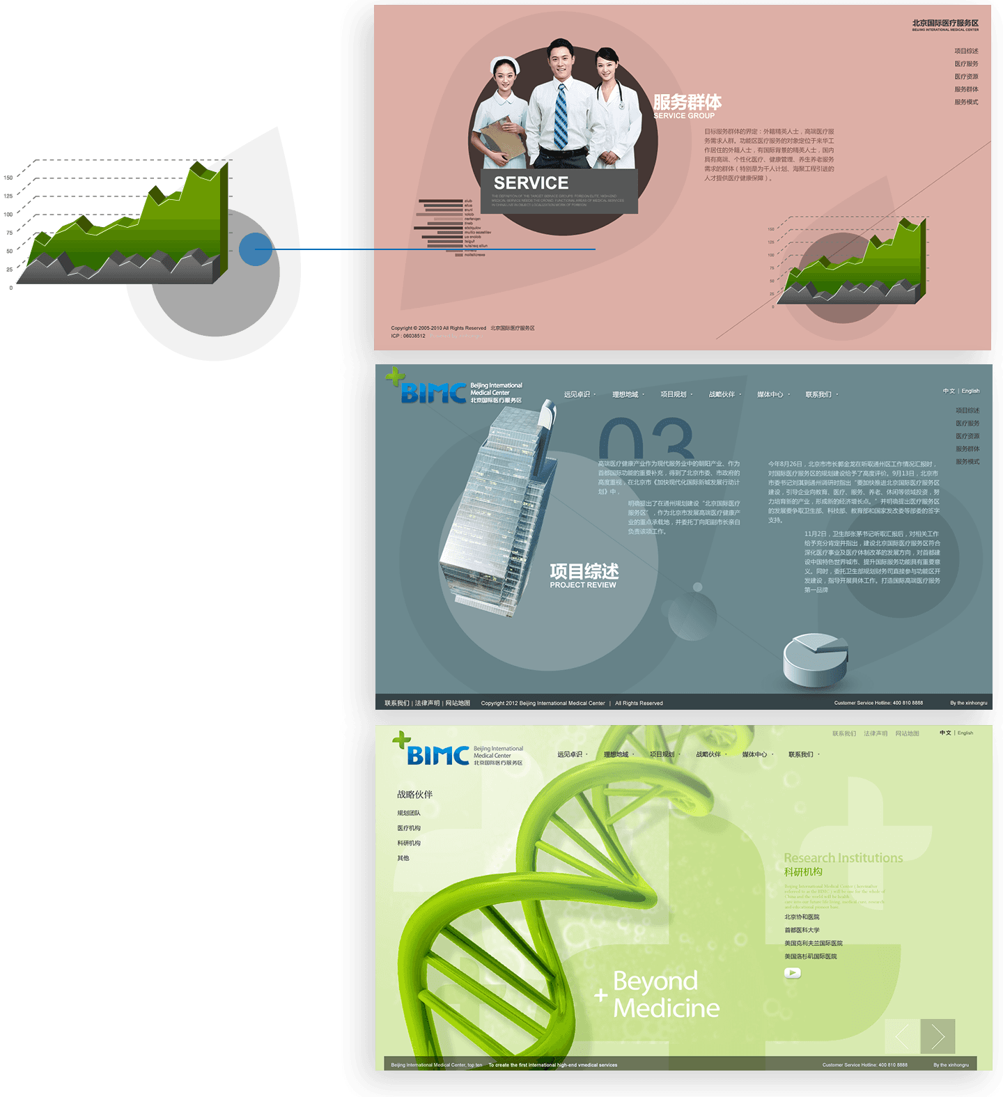 網(wǎng)站利用視頻元素和FLASH技術(shù),實(shí)現(xiàn)三維立體的動(dòng)畫表現(xiàn),展示北京國際醫(yī)療服務(wù)區(qū)全貌,形成強(qiáng)烈的視覺感受,塑造北京國際醫(yī)療服務(wù)區(qū)的品牌形象。同時(shí),網(wǎng)站中大量鼠標(biāo)交互效果,充分調(diào)動(dòng)訪問者的興趣,提升用戶的瀏覽體驗(yàn)。