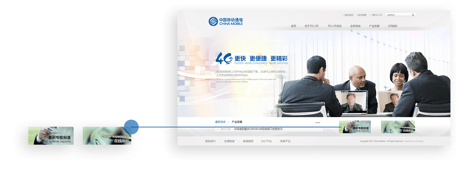 新鴻儒為中國移動(dòng)提供整體的官網(wǎng)建設(shè)服務(wù),從前期的策劃到設(shè)計(jì)、制作、開發(fā)以及運(yùn)維,