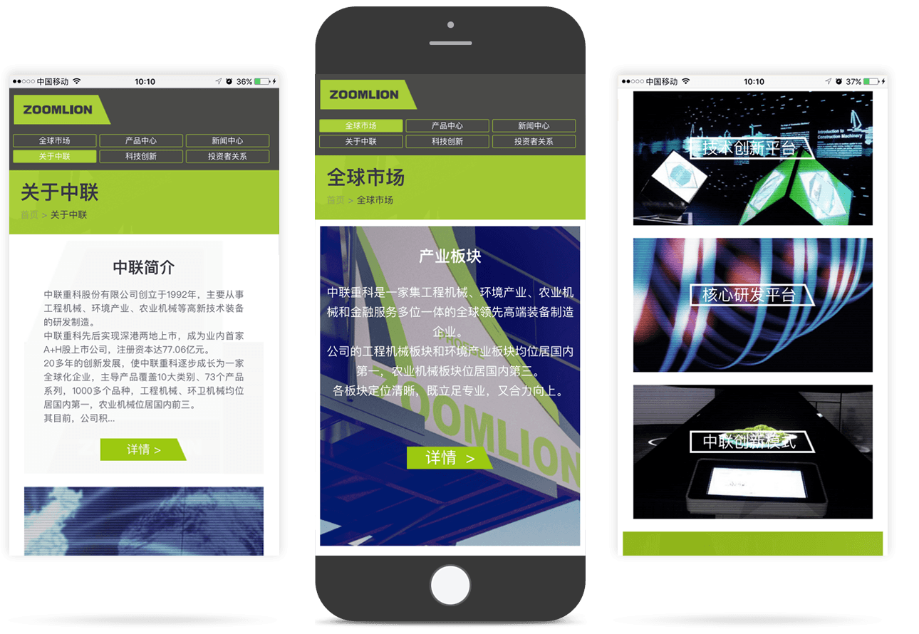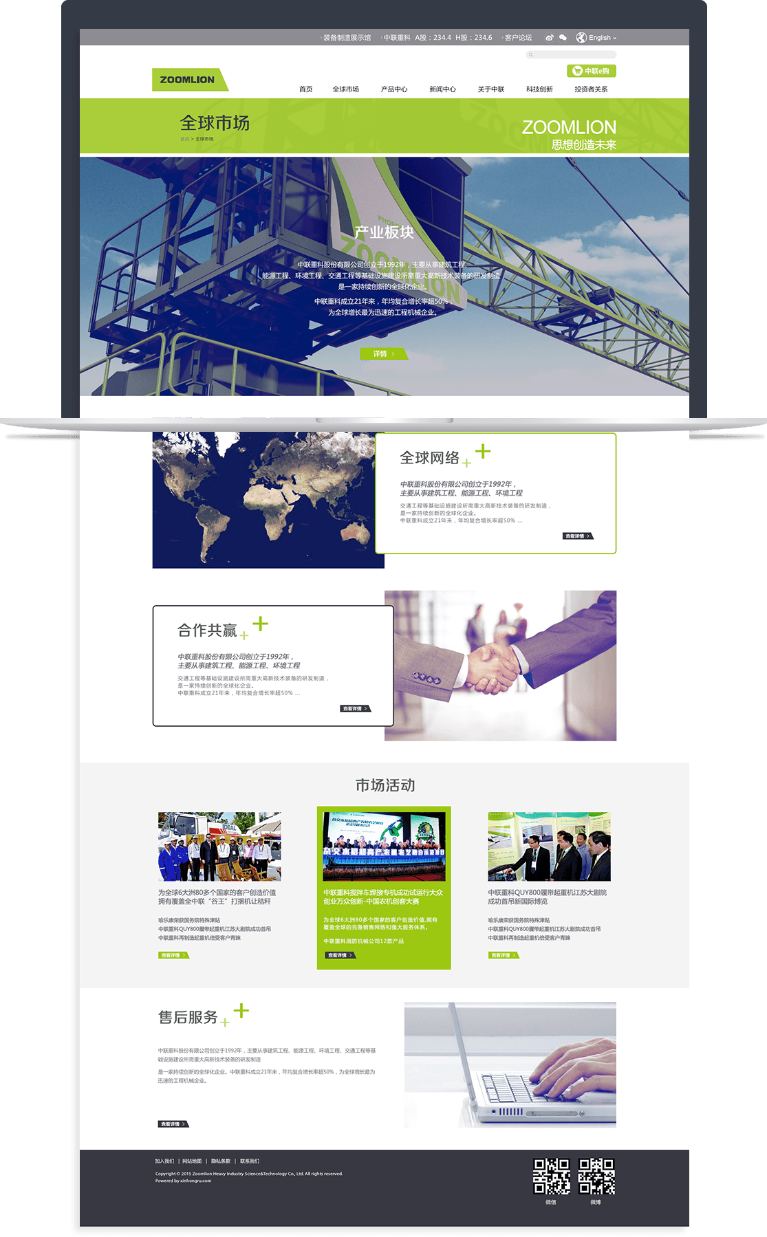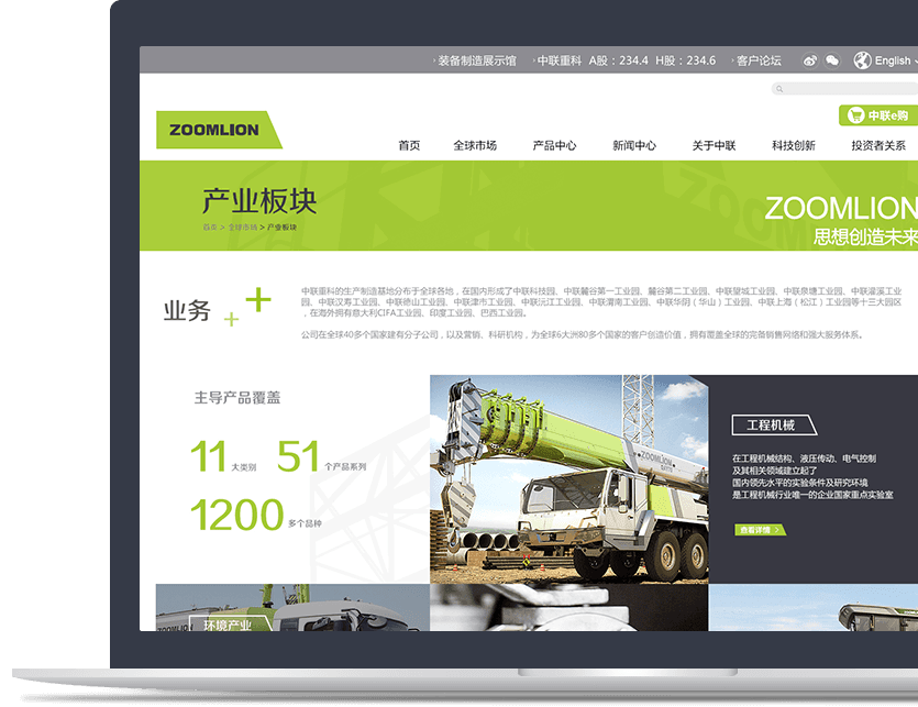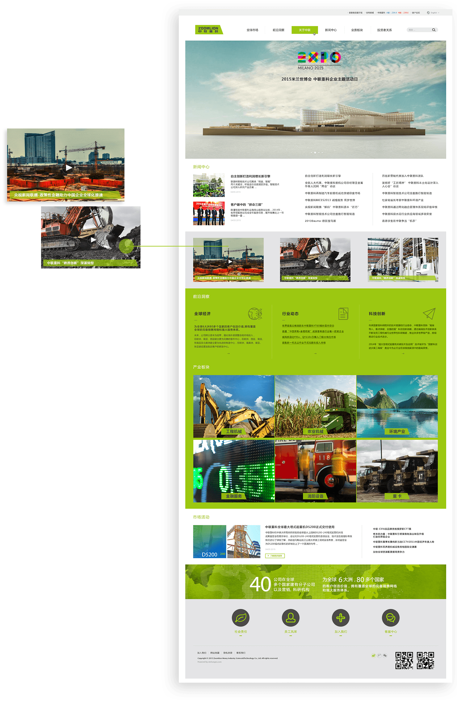 新鴻儒為中聯(lián)重科打造現(xiàn)代化、科技感的集團(tuán)官網(wǎng)——以國際流行的扁平化和色塊方格的長布局為核心,通過錯(cuò)落排版的圖片